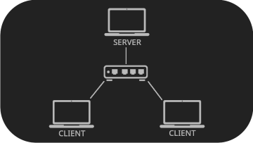 ThrowableObject.cs)The physical setup follows a client-server model, with one server and two clients connected via Ethernet cables through a switch hub.